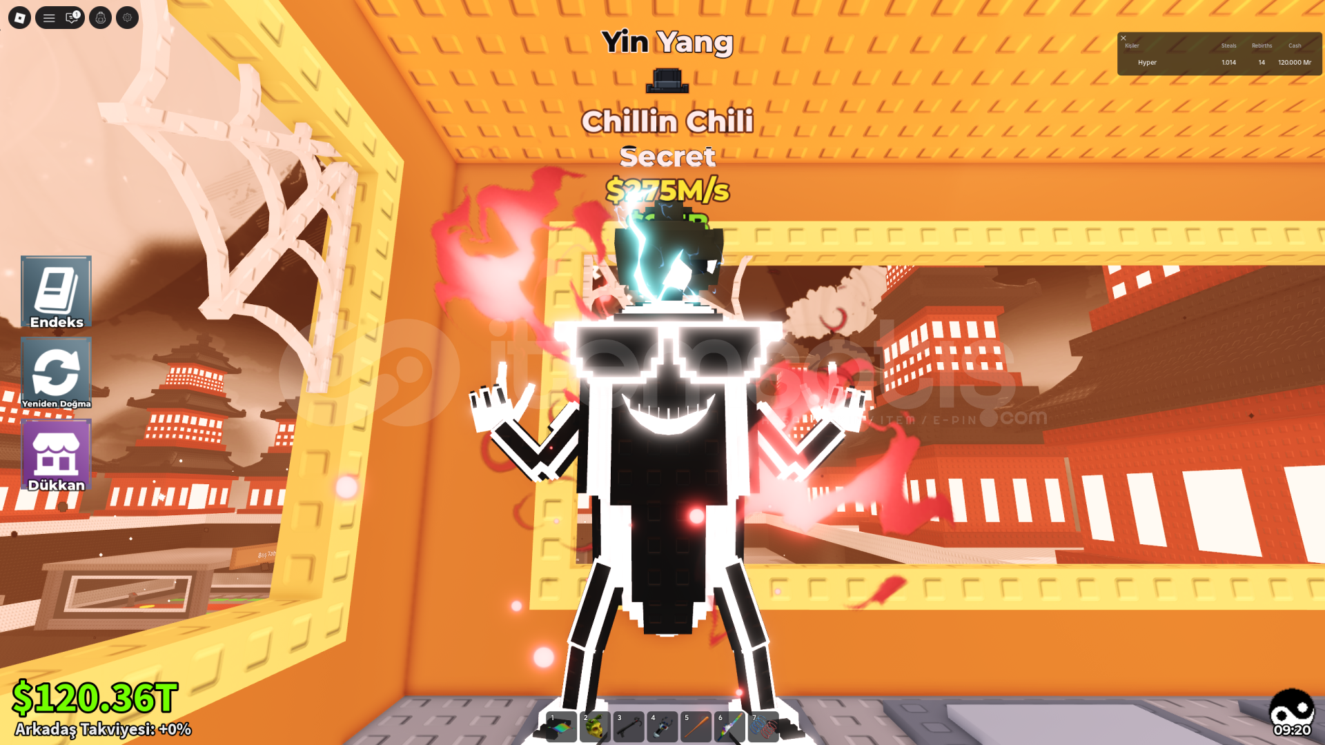 ÜRÜN HAKKINDA GENEL DETAYLAR ;Satın Aldıktan Sonra Bana Kullanıcı Adınızı Yazmanız Yeterlidir.Oyun içinden 1 adet Yin Yang Chillin Chili verilecektir.Toplu alım için dm üzerinden ulaşabilirsiniz.Private Serverda teslim edilir.Oyunda bulunan en nadir secretlerden biridir.Satın aldıktan sonra kayıt açmayı unutmayınız.
