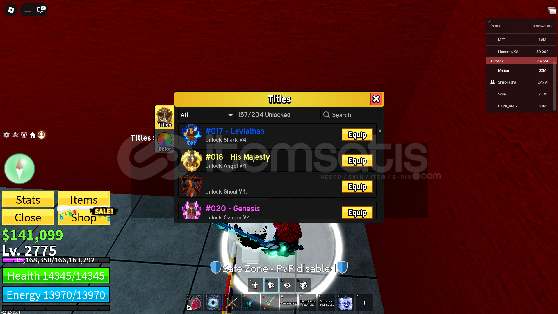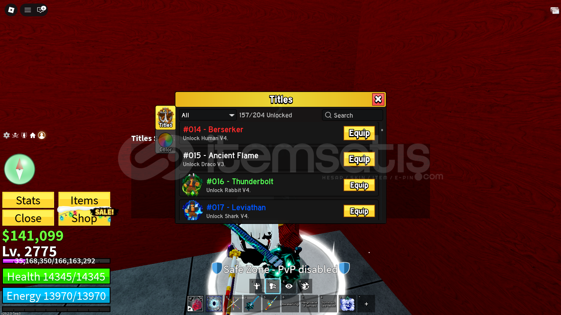 HESAP 2775 LVLDIR CDK , DARK BLADE , HOLLOW SCYTHE VE SKULLGUİTAR BULUNMAKTADIR.Dark BLADE V3 Emek hesapGeri Çekilme Hesabın Ban Yemesi Gibi Durumlar Yok Garantili HesapType soul: Ban+mask , Arrancar True Segunda Vampire , Quincy VOLLSTANDİAPERM; RocketDark Blade 2x Money 2x Mastery 3x STORAGE136k BELİ VE 1K FRAGMENT VARDIR.HAKİ V2 YAPILMIŞTIR.V4 FULL GEAR 7 TANEPİRATE 30M MARİNE 30M BOUNTY.B&Uu...