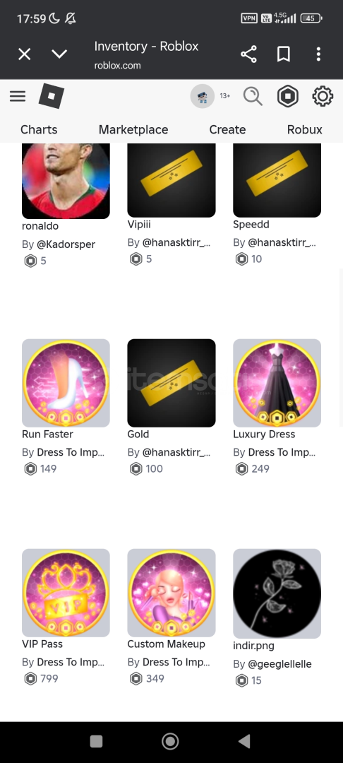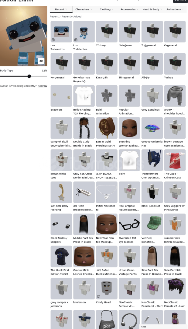 Hesap dopdolu toplamda 20-30k arası robux yatirilmis hesabı aldığınızda tüm satın alımları toplayabilirsiniz isterseniz gamepasslar sste gorunuyor çok fazla brookhaven,pls donate,dress to impress,bloxburg ve daha saymadigim oyunlar ayrıca steal a brainrotda uçan halı var fakat sabda brainrot falan yoktur bilginize ama alan kişiye 285m los combinasionas hediye edebilirim