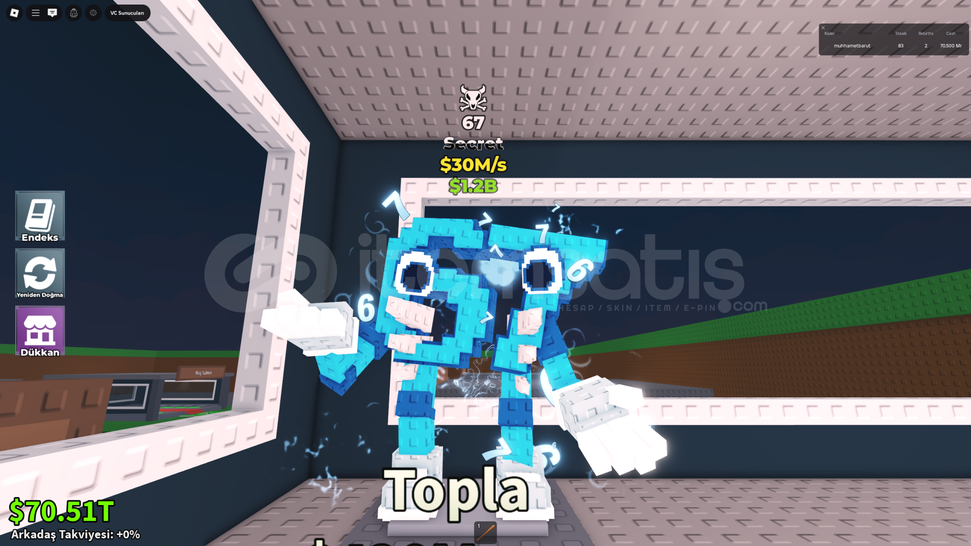 ÜRÜN HAKKINDA GENEL DETAYLAR ;Satın Aldıktan Sonra Bana Kullanıcı Adınızı Yazmanız Yeterlidir.Oyun içinden 1 adet 67 verilecektir.Toplu alım için dm üzerinden ulaşabilirsiniz.Private Serverda teslim edilir.Oyunda bulunan en nadir secretlerden biridir.Satın aldıktan sonra kayıt açmayı unutmayınız.