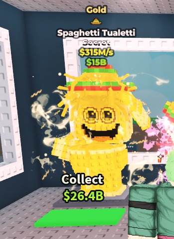 Gold Spaghetti Tualetti / saniyede 315M verir. Bu Miktar Rebirth Sayınıza Göre Artar.