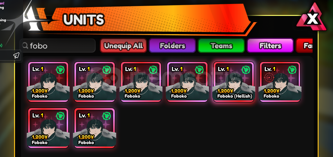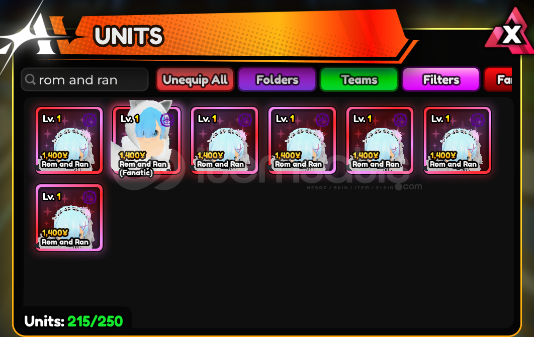 Anime Vangurds 32 Tane Unevo UnitBroly Veya SJW nun Sacrifise Görevleri İçin Veya Stat Rollamak İçin Kullanılabilir.İçlerinde S S+ Z Z+ Stata Sahip Olanlarda Vardır.Totalde6x Rom and Ran4x Emmie7x Foboko7x Karem3x Arc1x Hebano3x Marlin1x RudieTotalde 32 Tanedir Trade İle Verilir.