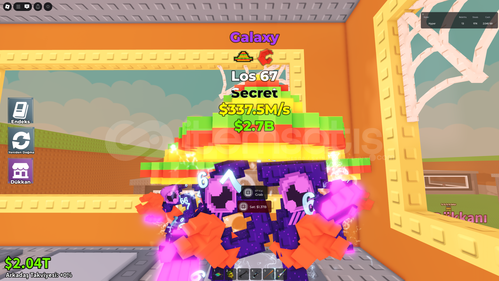 ÜRÜN HAKKINDA GENEL DETAYLAR ;Satın Aldıktan Sonra Bana Kullanıcı Adınızı Yazmanız Yeterlidir.Oyun içinden 1 adet Galaxy Los 67 verilecektir.Toplu alım için dm üzerinden ulaşabilirsiniz.Private Serverda teslim edilir.Oyunda bulunan en nadir secretlerden biridir.Satın aldıktan sonra kayıt açmayı unutmayınız.