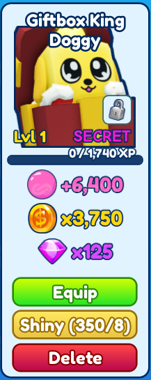 350 adet Giftbox King Doggy verilmektedir.Teslimat gördüğüm gibi anında yapmaktayım.Satın almadan önce dmden yazmanız yeterli.NOT :Hafta içi akşam 5 ile 12 arasında aktifim.Tanesi yaklaşık 64 kuruşa denk gelmektedir.