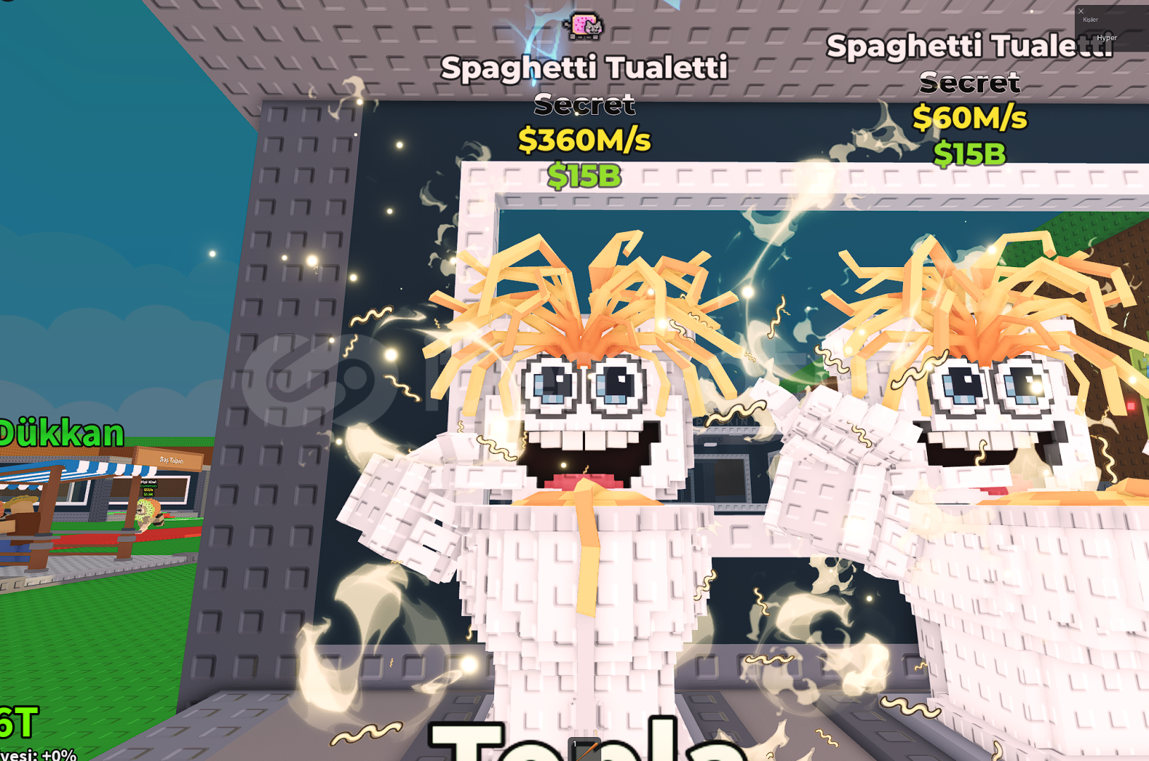 ÜRÜN HAKKINDA GENEL DETAYLAR ;Satın Aldıktan Sonra Bana Kullanıcı Adınızı Yazmanız Yeterlidir.Oyun içinden 1 adet Spaghetti Tualetti verilecektir.Toplu alım için dm üzerinden ulaşabilirsiniz.Private Serverda teslim edilir.Oyunda bulunan en nadir secretlerden biridir.Satın aldıktan sonra kayıt açmayı unutmayınız.