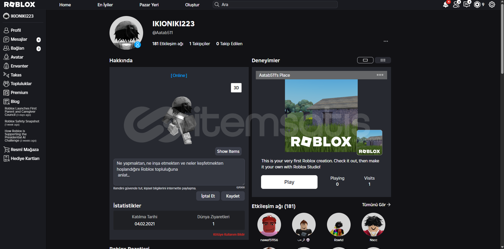 İlan Hakkında;Aktif olmasam bile satın alabilirsiniz.Hesapta mail doğrulanmadığı için hesaba girdiğinizde Mail ve Şifreyi yenileyebilirsiniz. İlanı satın aldıktan sonra hesap komple sizin oluyor.Hesapta +3K Robux harcanmıştır. Bolca Offsale vardır.İlanı satın aldıktan sonra kayıt açmanızı rica ediyorum. Aksi takdirde de...