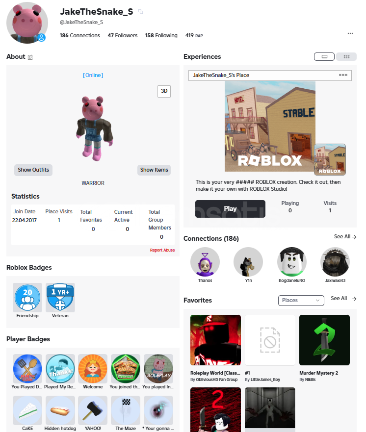 2018'Den beri düzenli oyun geliştiren bir insanım roblox düzenli oynuyorum 7 yıldır. Sitedeki en kaliteli hesap çıktı içinde eski doğrulama ile verilen hediye ve 3400 Robuxluk Limited Şapka çıktı. Teşekkürler warriorshop!