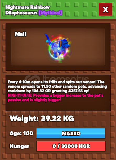 40KG RAINBOW HATCHED NIGHTMARE DILOPHOSAURUS