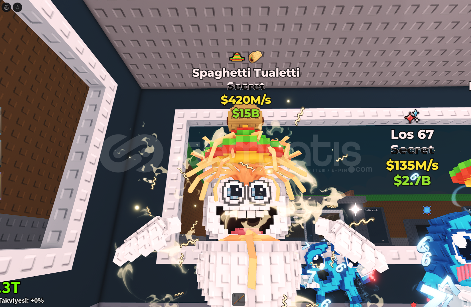 ÜRÜN HAKKINDA GENEL DETAYLAR ;Satın Aldıktan Sonra Bana Kullanıcı Adınızı Yazmanız Yeterlidir.Oyun içinden 1 adet Spaghetti Tualetti verilecektir.Toplu alım için dm üzerinden ulaşabilirsiniz.Private Serverda teslim edilir.Oyunda bulunan nadir secretlerdirSatın aldıktan sonra kayıt açmayı unutmayınız.