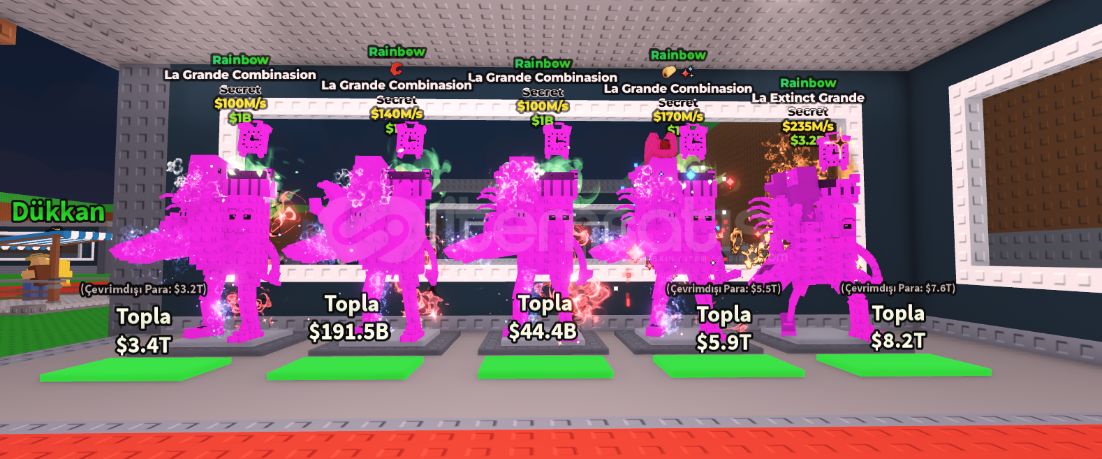 İlan detayları;Rainbow La Grande Combinasion! (100M)Rainbow La Grande Combinasion! (140M)Rainbow La Grande Combinasion! (100M)Rainbow La Grande Combinasion! (170M)Rainbow La Extinct Grande! (235M)Önemli; İlan ile ilgili özel bilgi almak için özelden mesaj atabilirsiniz. Bazen ilanı hemen teslim edemeyebilirim bu yüzden ilanı satın almak istediğiniz zaman bana mesaj atarsanız sizin için daha iyi olur.