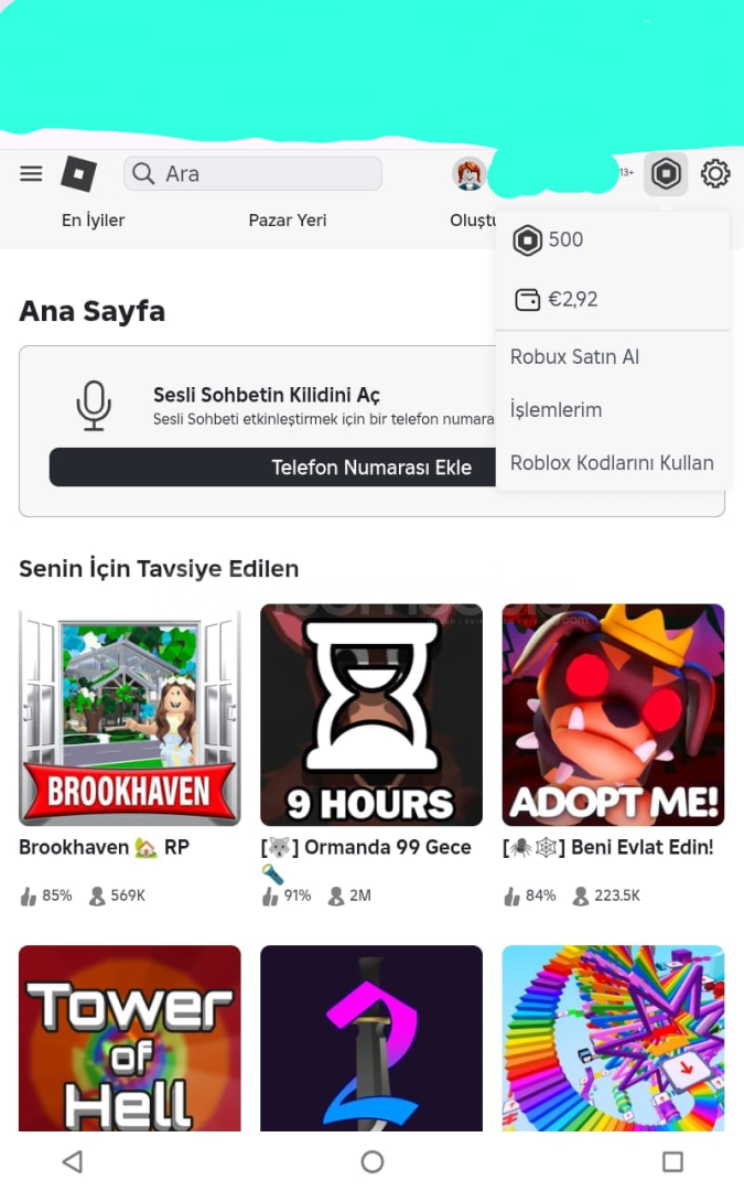 HESAP BİLGİLERİYeni HesaptırHesaba 500 Robux Alınmıştırİçinde 2,92 Euroda VardırOtamatik TeslimattırAl Sat Fiyata Satıyorum Alana Hayırlı Olsun Şimdiden