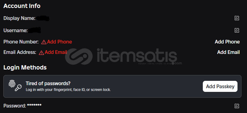 • Ek olarak hesaplar mailsizdir ve hiçbir şekilde hesapların maili bende mevcut değildir. Hesaplarda oluşacak herhangi bir sorunda sorumluluğu üstlenmemekteyim. Oyüzden hesabı alırken ek koruma ve 2Pass Key gibi korumalar eklemeyi unutmayın.