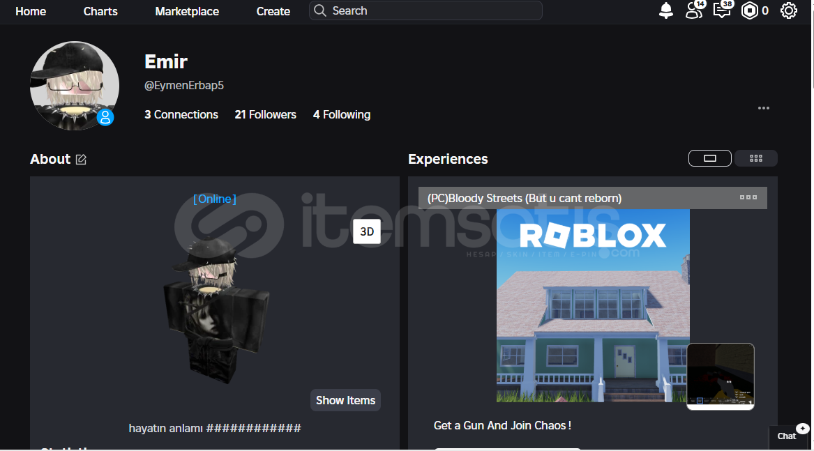 [Acil satılıktır sorularınız olursa bana ulaşabilirsiniz]Açıklama: Merhaba Hesap 2020 kurulu şuana kadar 50k+ robux yatırılmış ve içinde karakter yapmak için bir sürü eşya vardır. İster R15 ister R6 karakterleri dileğinizce yapabilirsiniz. özellikle brookhaven olmak üzere bir sürü gamepass var örnek vermek gerekirse ( Brookhaven Vip, Brookhaven Premium, Brookhav...