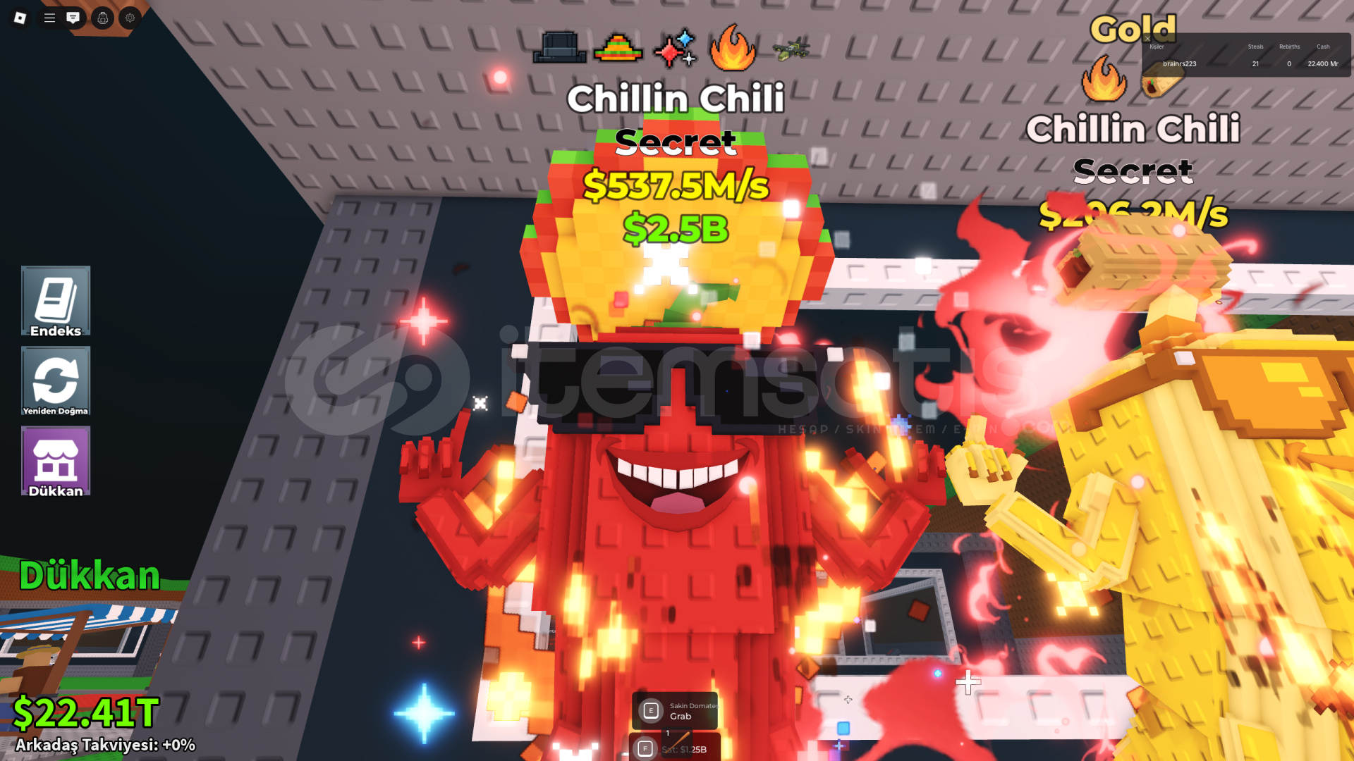 ÜRÜN HAKKINDA GENEL DETAYLAR ;Satın Aldıktan Sonra Bana Kullanıcı Adınızı Yazmanız Yeterlidir.Oyun içinden 1 adet Chillin Chili verilecektir.Toplu alım için dm üzerinden ulaşabilirsiniz.Private Serverda teslim edilir.Oyunda bulunan en nadir secretlerden biridir.Satın aldıktan sonra kayıt açmayı unutmayınız.
