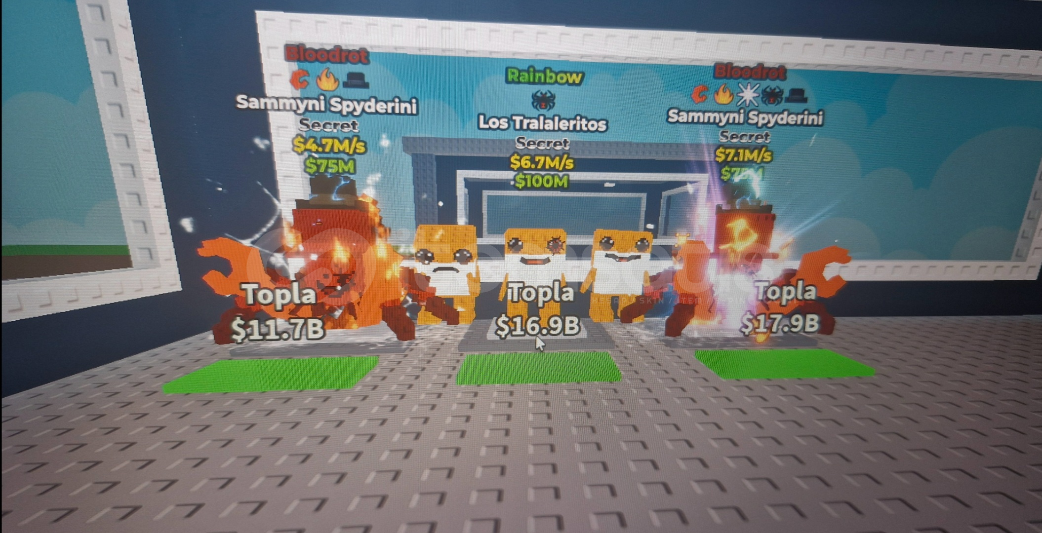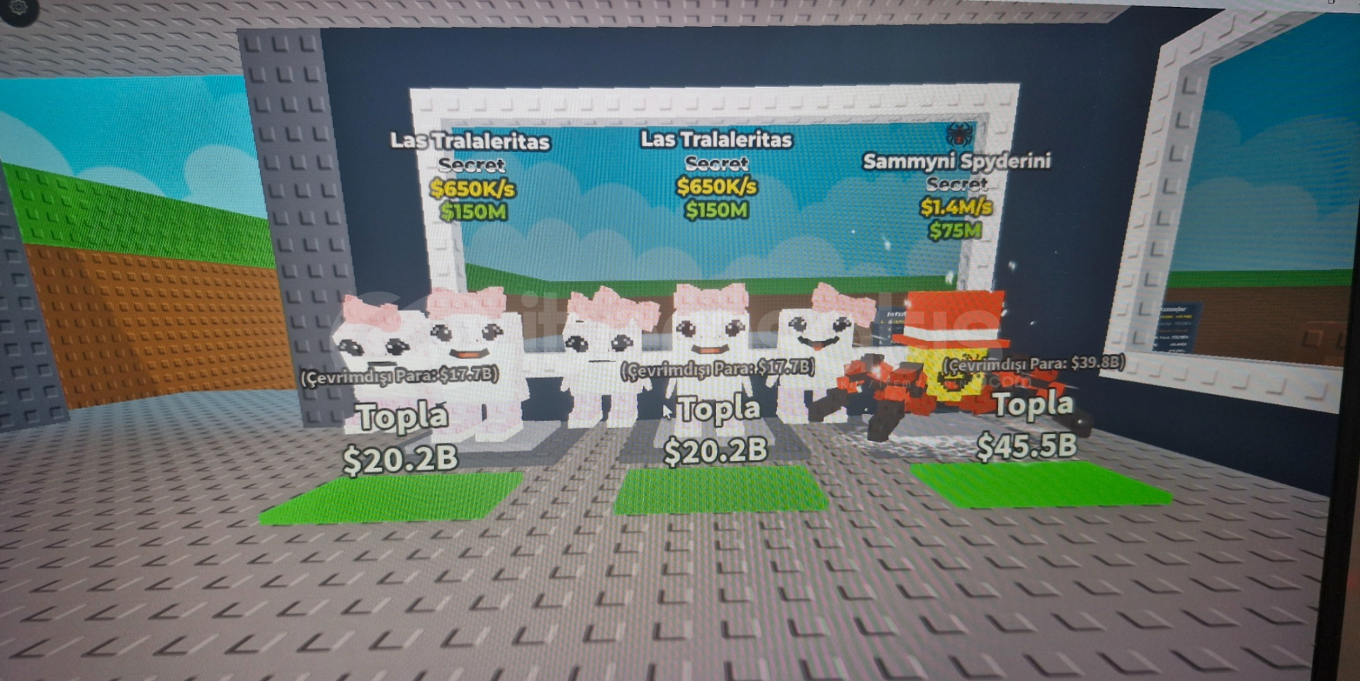 3 sammyni spydrini 1 rainbow los tralaleritos 2 normal las traleritas (aldıktan sonra oyun adınızı yazın ekliyeyim serverimde 5 dk da teslim edeyim)