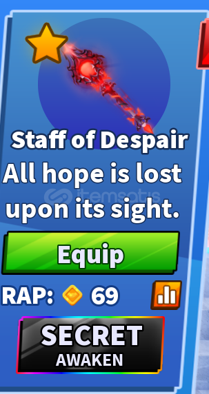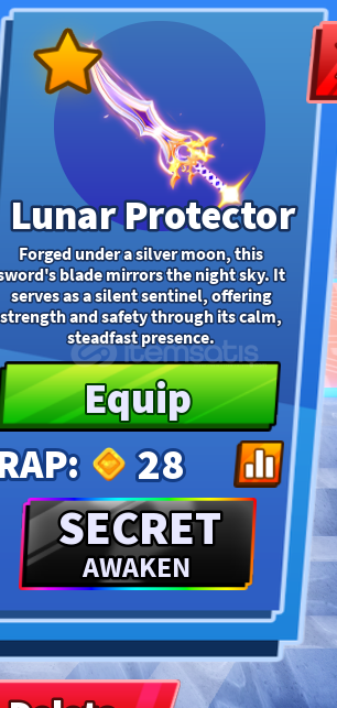 6 TANE SECRET SWORD2X FROZEN ETERNITY1X LUNAR PROTECTOR1X MEDUSAS WRAITH1X STAFF OF DESPAIR