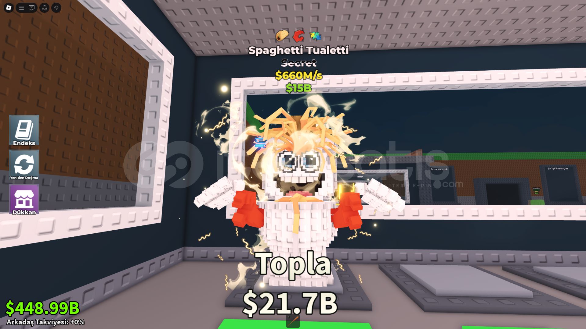 ÜRÜN HAKKINDA GENEL DETAYLAR ;Satın Aldıktan Sonra Bana Kullanıcı Adınızı Yazmanız Yeterlidir.Oyun içinden 1 adet Spaghetti Tualetti verilecektir.Toplu alım için dm üzerinden ulaşabilirsiniz.Private Serverda teslim edilir.Oyunda bulunan nadir secretlerdirSatın aldıktan sonra kayıt açmayı unutmayınız.