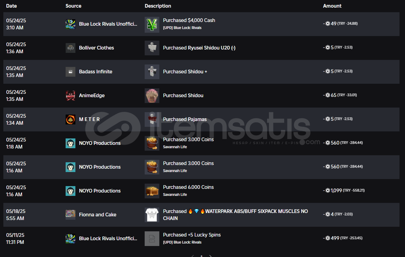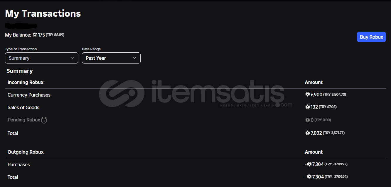 • İlanın başlığına neden 7 ila 10K Total arası yazdığımı soracak olanlara şöyle söyleyeyim. Hesabın 1 yıl öncesinden de Robux yatırma geçmişi olduğu için hesap aslında 7K Total'den yüksek yani 10K civarlarında. Fakat bu son 1 yıl içerisini de göz önüne alırsak f0toğrafta gördüğünüz gibi 7K Total'dir.