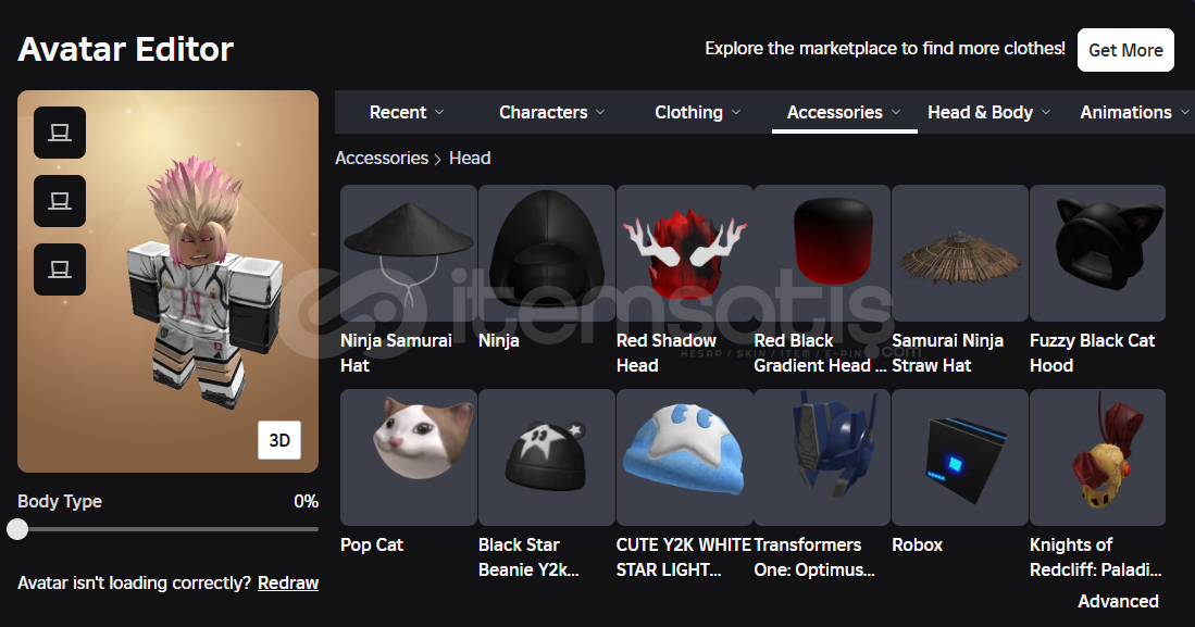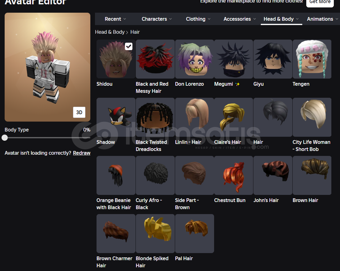 • Hesapta toplam '175' Robux bulunmaktadır.