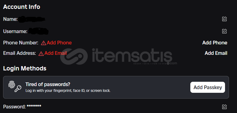 • Ek olarak hesaplar mailsizdir ve hiçbir şekilde hesapların maili bende mevcut değildir. Hesaplarda oluşacak herhangi bir sorunda sorumluluğu üstlenmemekteyim. Oyüzden hesabı alırken ek koruma ve 2Pass Key gibi korumalar eklemeyi unutmayın.