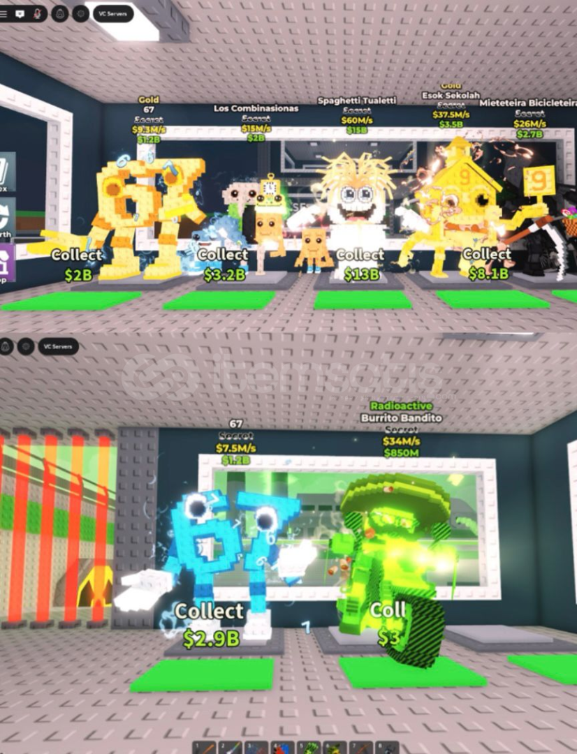 private serverda teslim edilir 67 GOLD $9.3M/slos combinasionas $15M/sspaghetti tualetti $60M/sEsok sekolah $37.5M/smieteteria bicicleteria $26M/s67 $7.5M/s Burrito Bandito Radioactive $34M/s