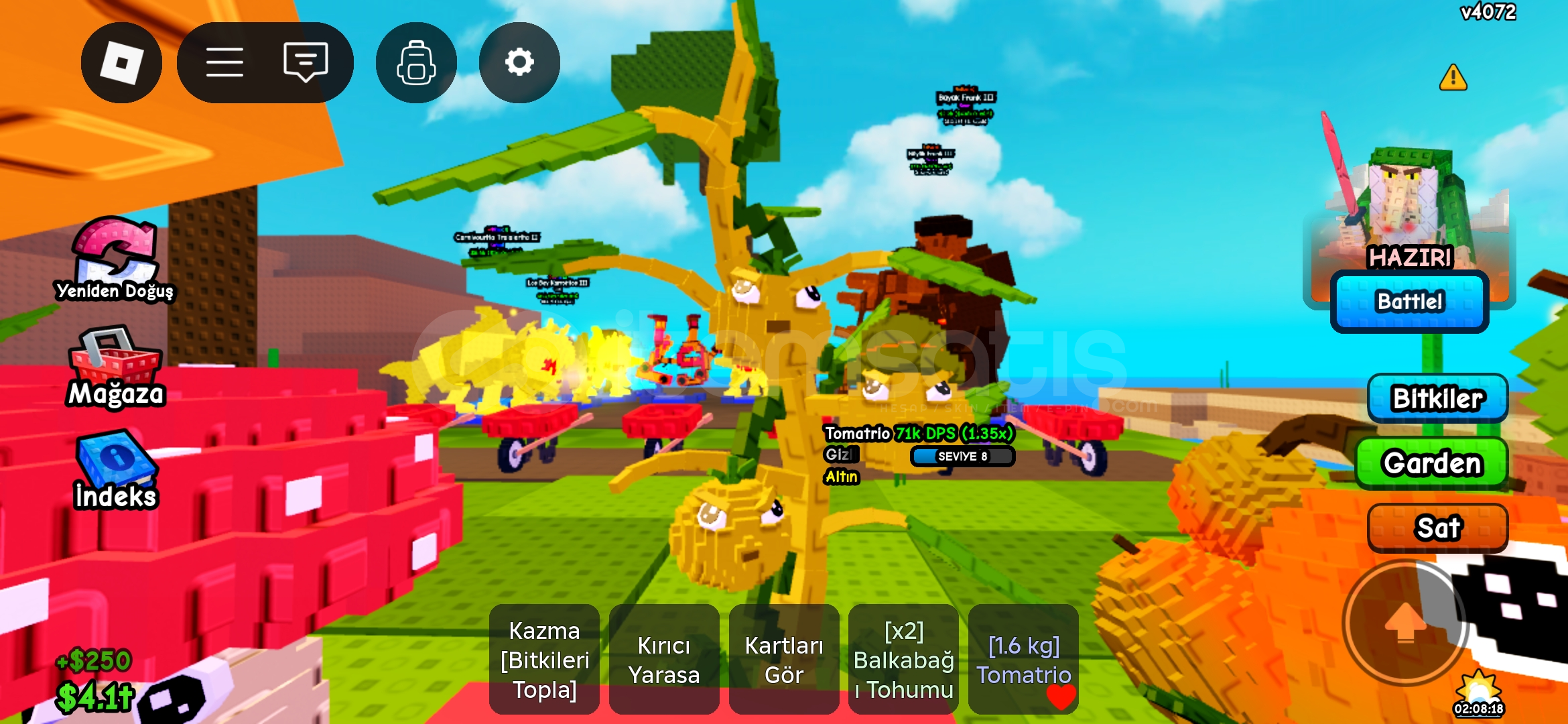 71k hasar vuran tomatriyo Altın yanına 100k hasar veren pet hediye