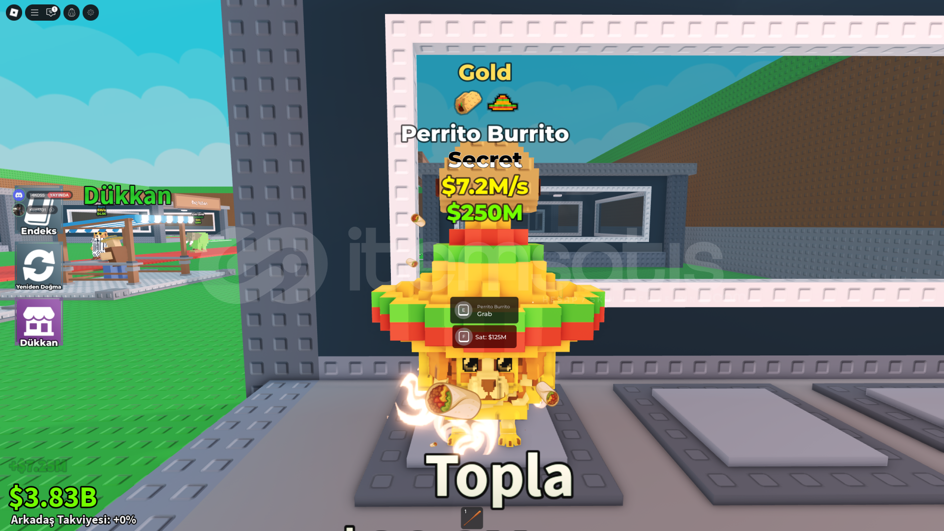 ÜRÜN HAKKINDA GENEL DETAYLAR ;Satın Aldıktan Sonra Bana Kullanıcı Adınızı Yazmanız Yeterlidir.Oyun içinden 1 adet Perrito Burrito verilecektir.Toplu alım için dm üzerinden ulaşabilirsiniz.Private Serverda teslim edilir.Oyunda bulunan nadir secretlerdirSatın aldıktan sonra kayıt açmayı unutmayınız.