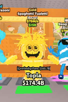 75M Gold Spaghetti Tualetti⭐ Aktif olmamızı beklemenize gerek yoktur.⭐ Dm den fiyat teklifi verebilirsiniz⭐ İlanı aldığınızda Sms gelir anında aktif olurum.⭐Özel serverda teslim edelir