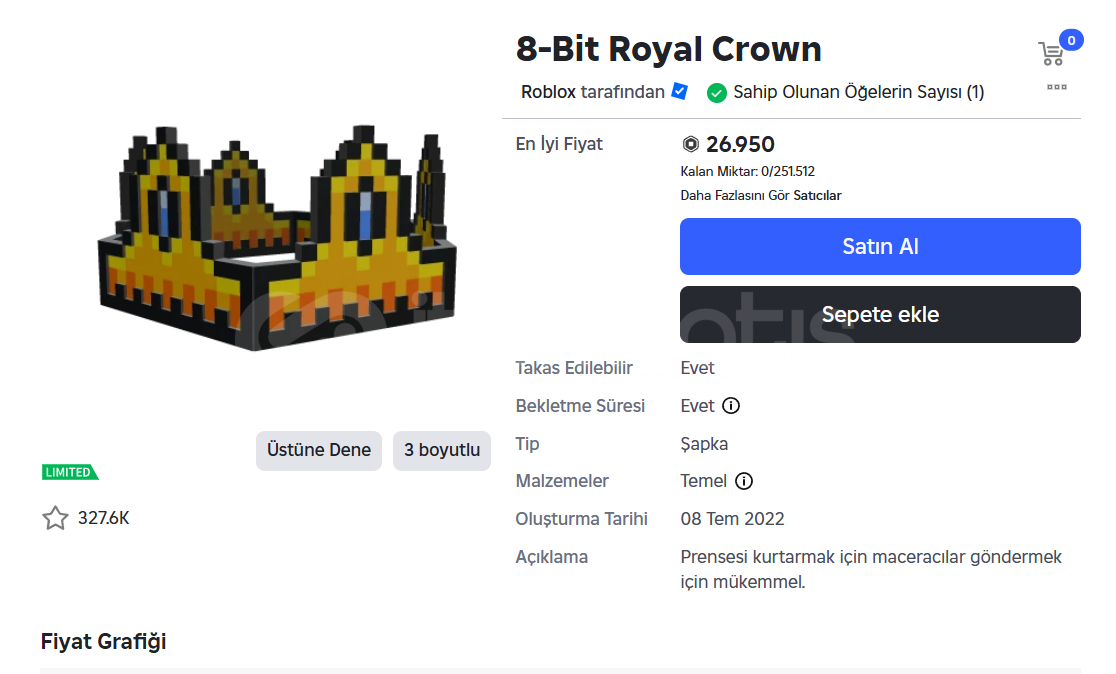 8-Bit Royal Crown 28k+ Value 27k+ Rap a sahip üründürürünü almanız için 7 gündür sizde olan herhangibi bir tradlene bilir limited lazımpremium sahibi olmalısınız trade gerçekleştirmek için