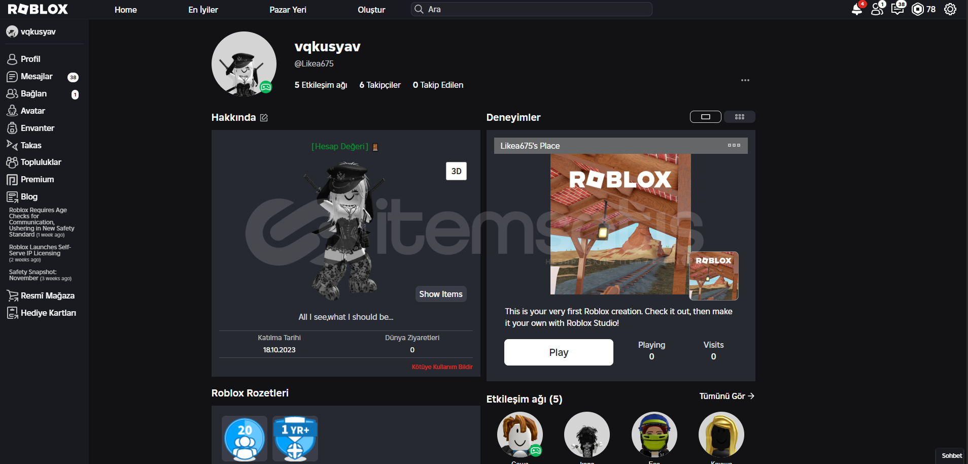 Hesap mailinize teslim edilecektirHesabın içerisin de 'Steal a brainrot' ve 'MM2' oyunlarında belli gelişmeler ve 78 ROBUX bulunmaktadır. Hesap, +13 yaş doğrulamalı ve sesli sohbeti açıktırMurder Mystery 2 de Vampir radyo ve Chroma Fang - Icewing Aquarium seti(silah ve kılıç) ve BattleAxe bulunmaktadır. Bu itemlerden almak istediğiniz varsa direkt teklifinizi ileterek yazın aksi takdirde dönü#...