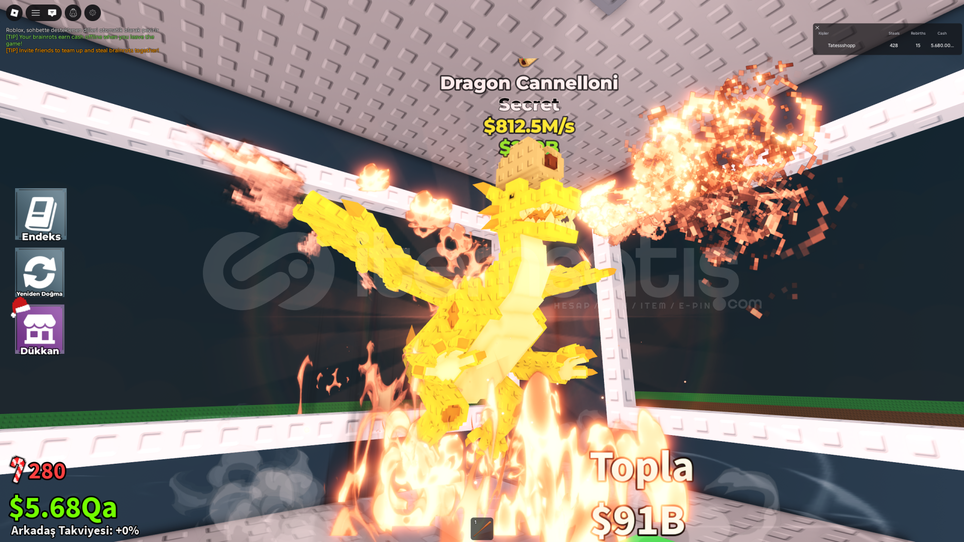ÜRÜN HAKKINDA GENEL DETAYLAR ;Satın Aldıktan Sonra Bana Kullanıcı Adınızı Yazmanız Yeterlidir.Oyun içinden 1 adet Gold Dragon Cannelloni verilecektir.Toplu alım için dm üzerinden ulaşabilirsiniz.Private Serverda teslim edilir.Oyunda bulunan nadir secretlerdirSatın aldıktan sonra kayıt açmayı unutmayınız
