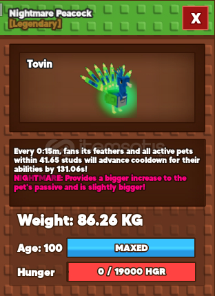 86KG Nightmare Peacock Age 100 Titan 15S