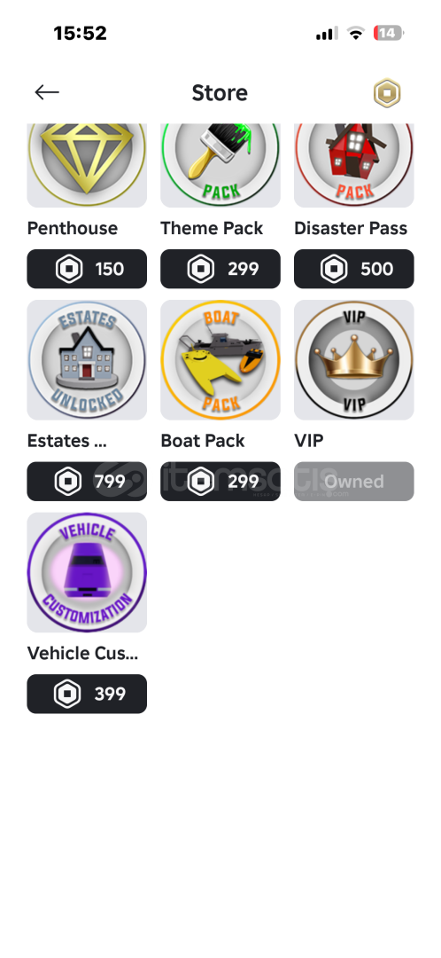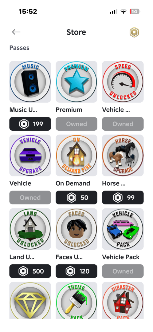 BrookHaven:VİP,PREMİUM,VEHİCLE SPEED,VEHICLE UPGRADE ve VEHICLE PACK passleri vardır
