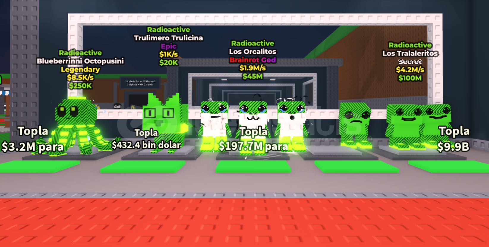 İçindekiler:-Grapiuss Medussi 8.5M/s | Radioactive-Los Tralaleritos 4.2M/s | Radioactive-Extinct Tralalero 3.8M/s | Radioactive-Tentacolo Tecnico 2.4M/s | Radioactive-Los Orcalitos 1.9M/s | Radioactive-Trippi Troppa Troppa 1.4M/s | Radioactive-Orcalero Orcala 850K/s | Radioactive-Bluberinni Octopusini 8.2K/s | Radioactive-Trulimero Trulicina 1K/s | Radioactive2 Adet Rastgele Secret Pet Hediye Verilecektir.🎯 Neden bizi tercih etmelisiniz?⏰ 7/24 destekn...