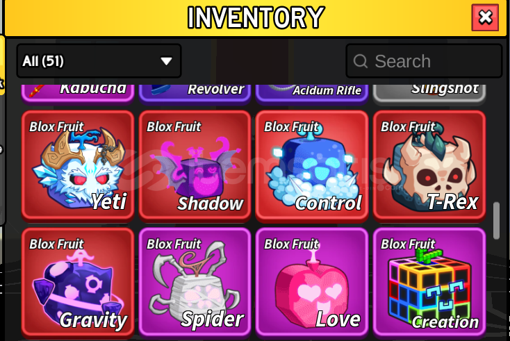 envanterinde:yeti,shadow,gravity,t-rex,control gibi değerli meyveler vardır