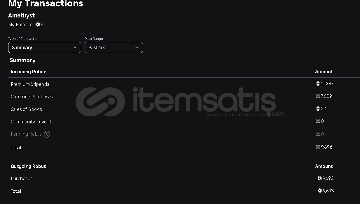 -PAZARLIK YAPILIR-EN GÜVENİLİR ŞEKİLDE TESLİM EDİLİR-İTEMSATIŞ GÜVENCESİYLE-Hesapta 3 Robux BulunmaktaTOTAL 9.693 ROBUX HARCANMIŞTIR