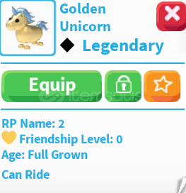 ADOPT ME 2 ADET RİDE GOLDEN UNİCORN