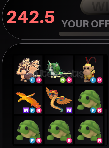 fr ccbd - 2 fr turtle - 2 r turtle - nr mermicorn - fr monkey king - mfr phoenix - m quetzalcoalt - fr frost fury - nr hyena - mr patch bear - mfr indian flying foxPETLER AYRI AYRI DA SATILIKTIR TOPLU DA OYUNU BIRAKTIGIM İCİN SATIYORUM PAZARLIK VAR