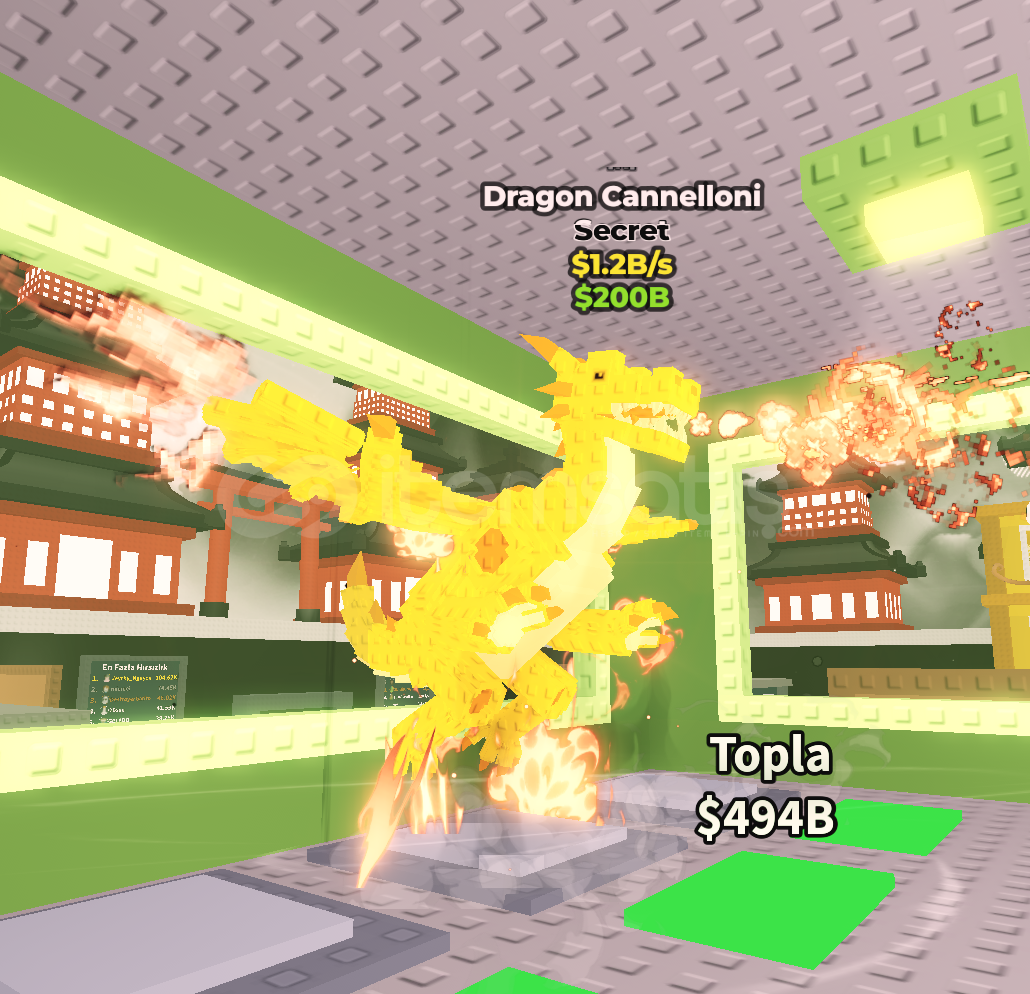 🔥 Açıklama: Altın parlaklığıyla sahayı aydınlatan Dragon Cannelloni, 1.2B/s gücüyle efsaneler arasına giriyor! 🐉 Hem görünüm hem güç açısından TR piyasasında çok az bulunan bir brainrot. 💥 Boss savaşlarında fark yaratır, koleksiyonlarda ise değerini katlar.
