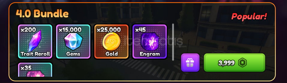 Anime Final Strike da 4.0 Bundle verilecektir.----Paketin içinde:200 Trait Reroll15,000 Gems25,000 Gold45 Engram35 Perfect Engram vardır----Level farketmiyor.