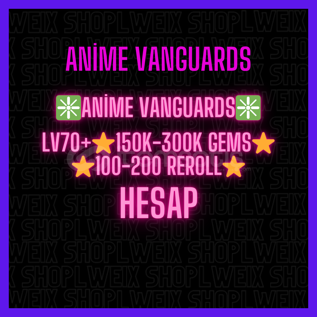 EN ÇOK TERCİH EDİLEN, GÜVENİLİR VE TAM O.TOMATİK MAĞAZAMIZA HOŞGELDİNİZ!Hesap ta ❇️Anime Vanguards❇️Lv70+⭐150k-300k Gems⭐100-200 Reroll⭐ vardırHaruka Rin VardırÇok Sayıda Mythic BulunmaktadırHesap 70+ LeveldirHesap MailsizdirAktif Olmasam Bile AlabilirsinizHerhangi Bir Sorunuz Olursa Hiç Düşünmeden Yazınız.