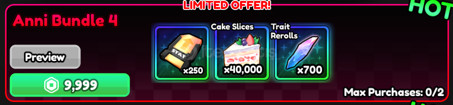 anni bundle 4 - anime vanguardaktif olmasak bile satın alabilirsiniz, en kısa süre içerisinde teslimatınızı sağlarız.ürün hakkında bilgi;stok sorunumuz yoktur.1x anni bundle 4 teslim edilir.oyun içi gift yoluyla teslim edilir.roblox kullanıcı adınızı bize iletmeniz yeterlidir.satın alım sonrası size private sunucu linki gönderilir.level fark etme...