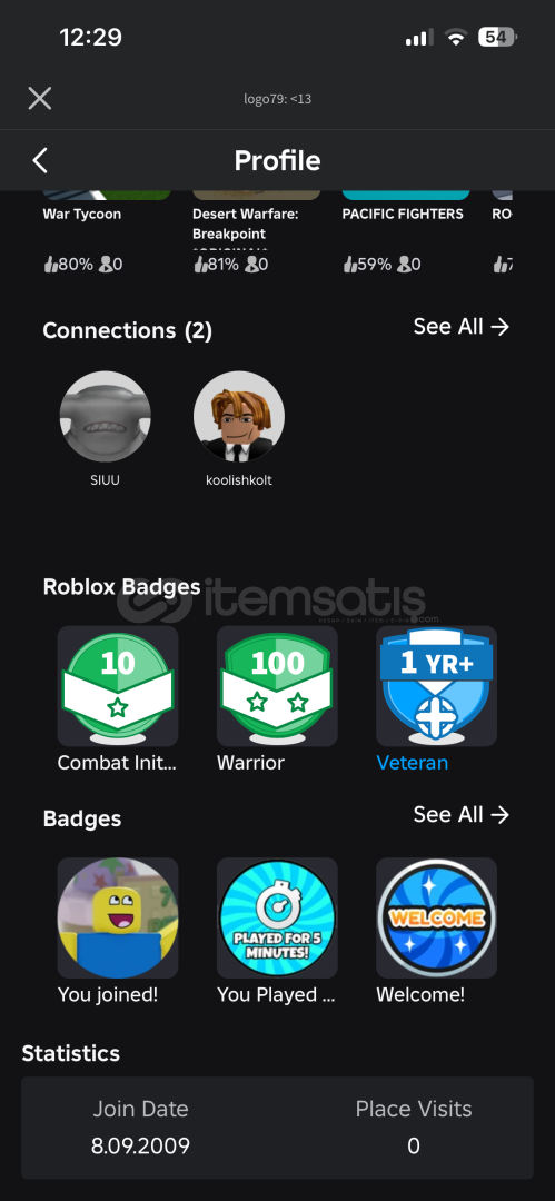 Hesabın ismi kalitelidir, hesapta eski roblox badgeleri vs vardır. herhangi bir mail durumu yok önceden hiç bağlanmamıştır oldukça ucuz bir fiyata satıyorum