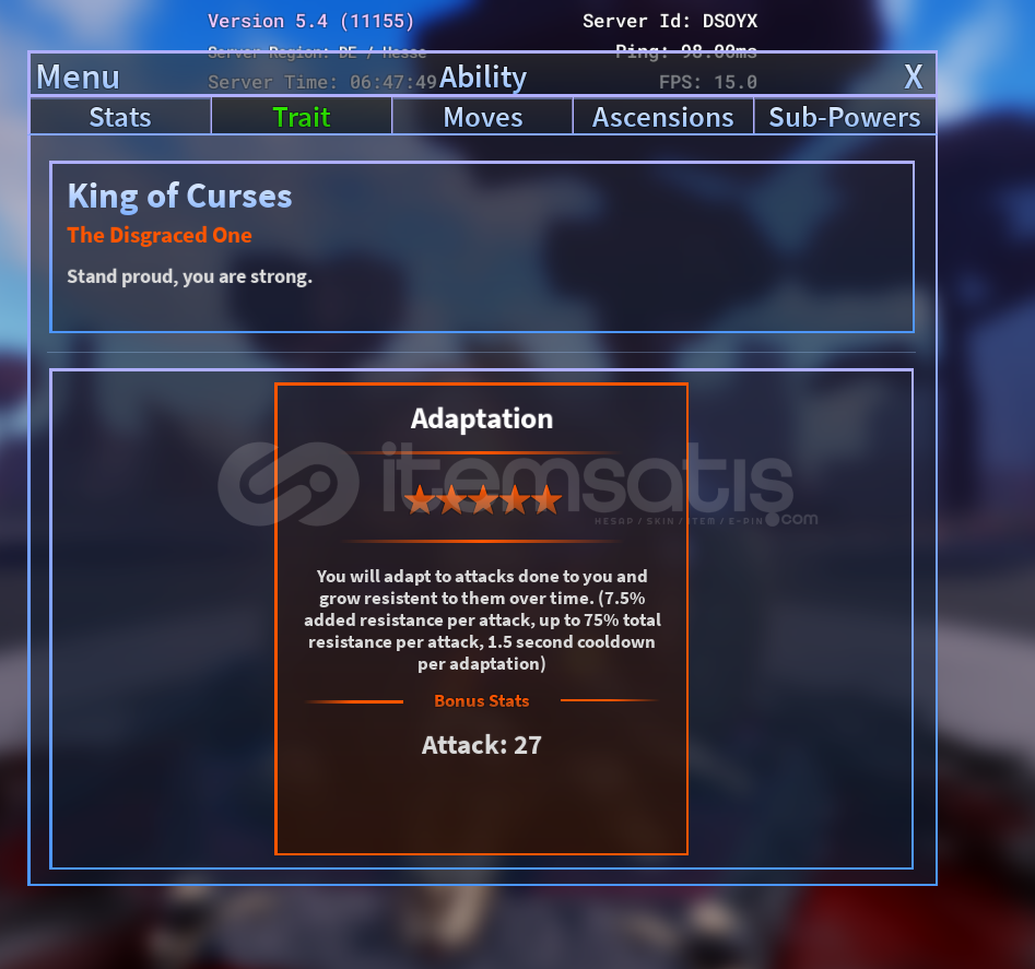 AUT-Sukuna Stand [ Adaptations ]Adaptations Traite sahip Standlar Oyun içinde En Güçlü ve En Değerli standlardır Değerleri En yüksek itemleri geçer ztn Adaptations iyisi yok sukunadaÖzellikle Adaptations Trait sahipleri Oyun içinde orantısız koruma ve zaman durdurmasından etkilenmeme  ile yenmesi çok uğraştıran tek traitDiğer İlanları...