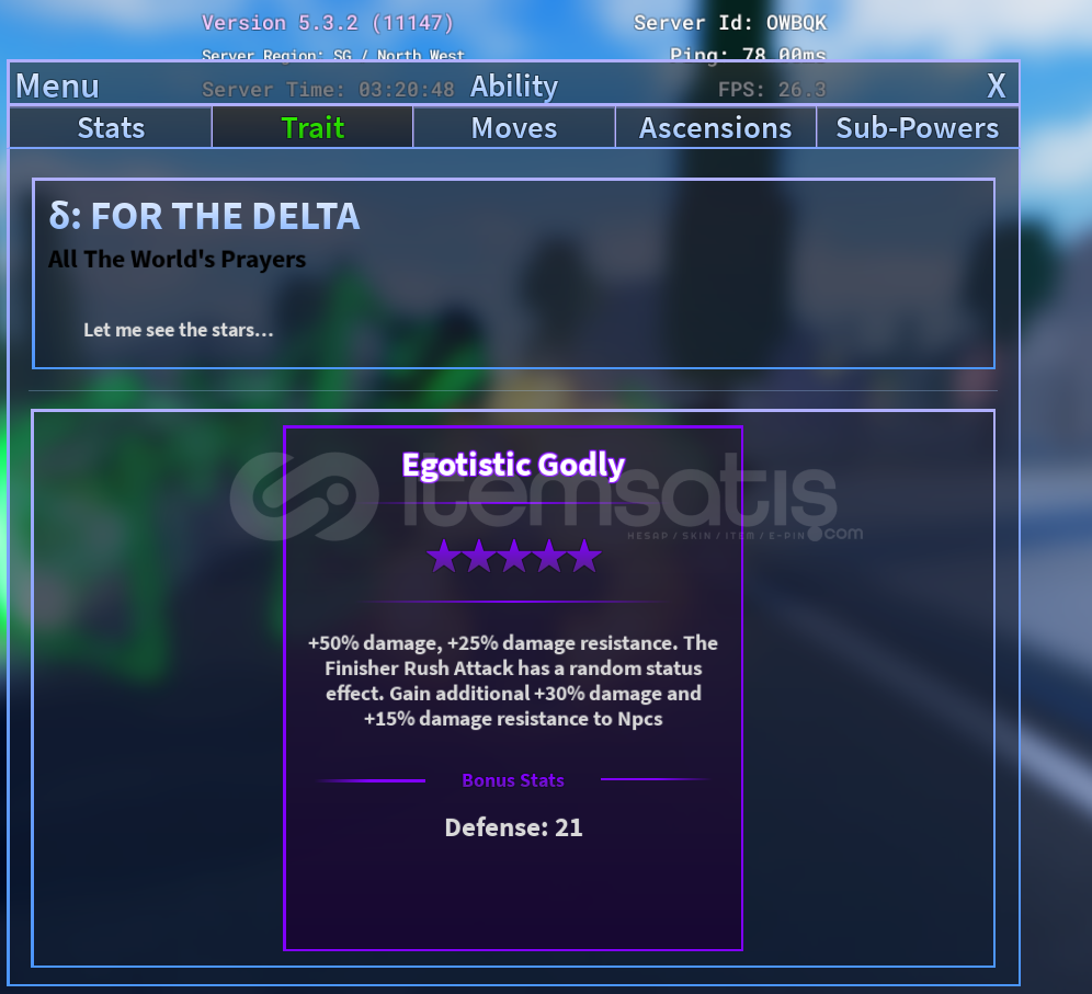 ÖzellikleEgotistic Godly Trait sahipleri Oyun içinde orantısız güçlü ve hasar çıkışı ile yenmesi çok uğraştıran tek ve ENNN değerli trait