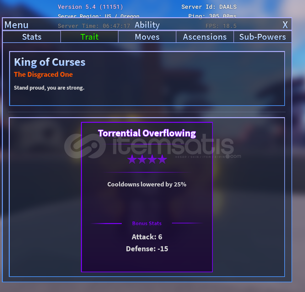 AUT-Sukuna Stand [  Torrential Overflowing ]Torrential Overflowing Traite sahip Standlar Oyun içinde En Beklemeeden skill atan ve En Değerli standlardır Değerleri En yüksek itemleri geçer ztn Özellikle Torrential Overflowing Trait sahipleri Oyun içinde orantısız Skill Cooldawn düşüren tek trait olur kendisiDiğer İlanlarıma da bir göz at hepsi hesap de...