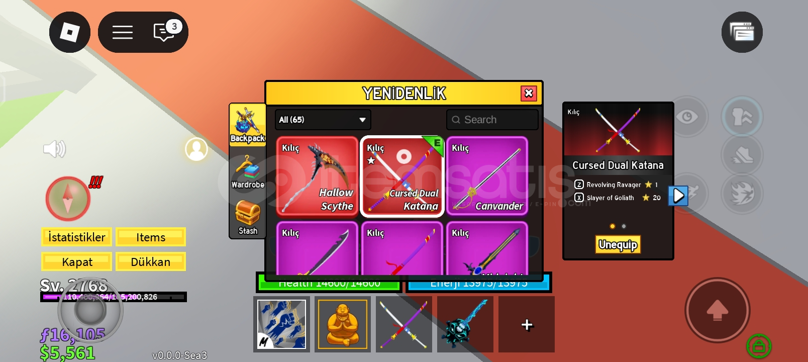 Avatarlar 300 robux a kadar mevcuttur psx,ormanda 99 gece oynanmıs ve baya ilerlenmiştir hesap gmaile bağlıdır eğer gmailini verirseniz hemen değiştirilir ve size teslim edilir blox fruıts oyununda ise sslerde gosterildiği gibi 3 adet stock vardır buddha magma ıce v2 dir ırklar ise v3 ve v2 olarak ayrılır v3 olan ırklar shark ve ghoul v2 olanlar ise rabbit ve humandır ırklar acısından bir bilgim y...
