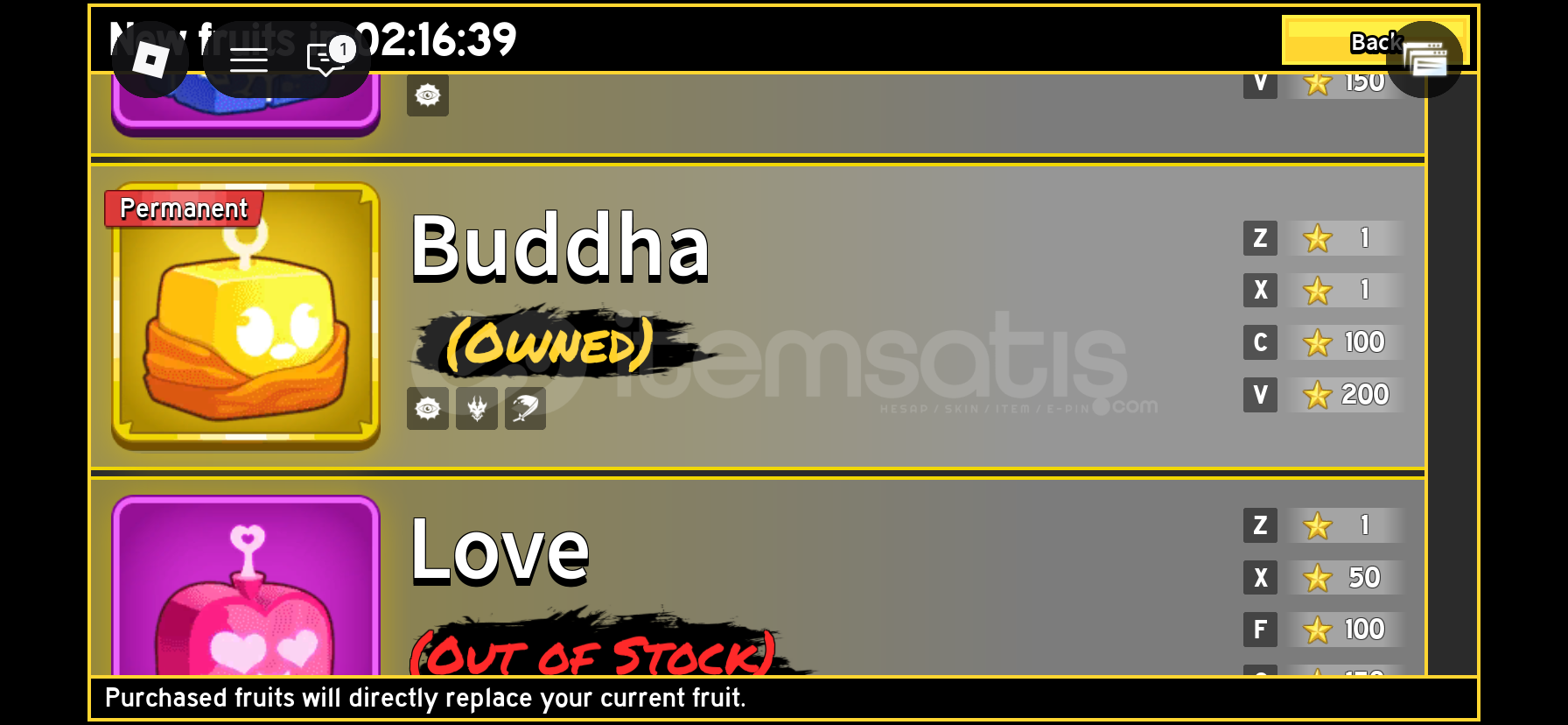 Hesapta blox fruit oynunda bir sürü meyve mevcuttur.