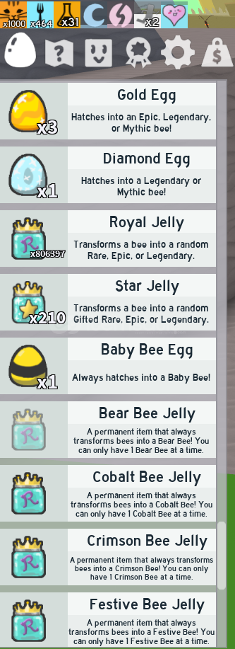 Cub buddy var, bear bee var, 49 robux var.
