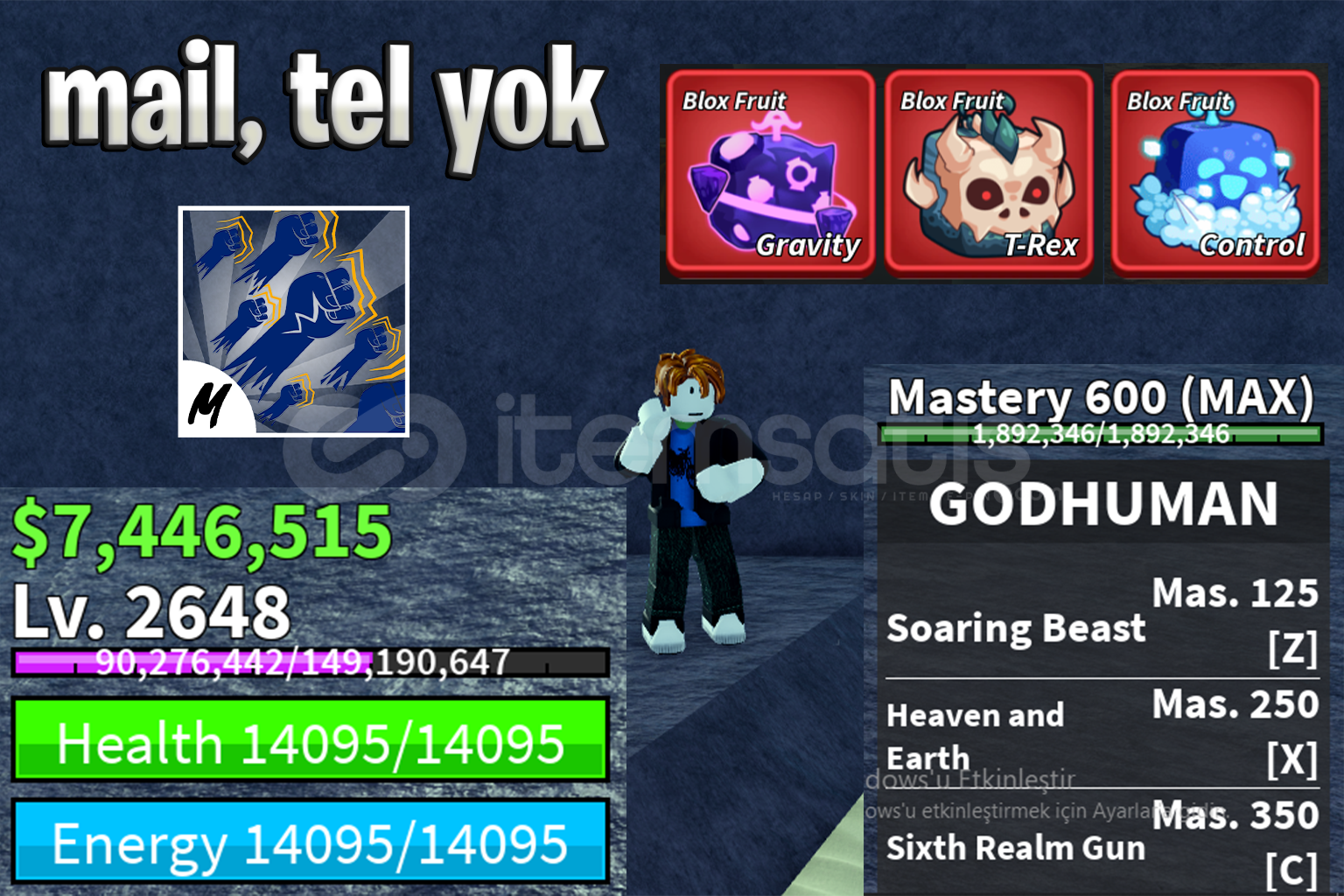 BF 2600+ LVL + 3 KIRMIZI MEYVE + GOD HUMAN HESAP
